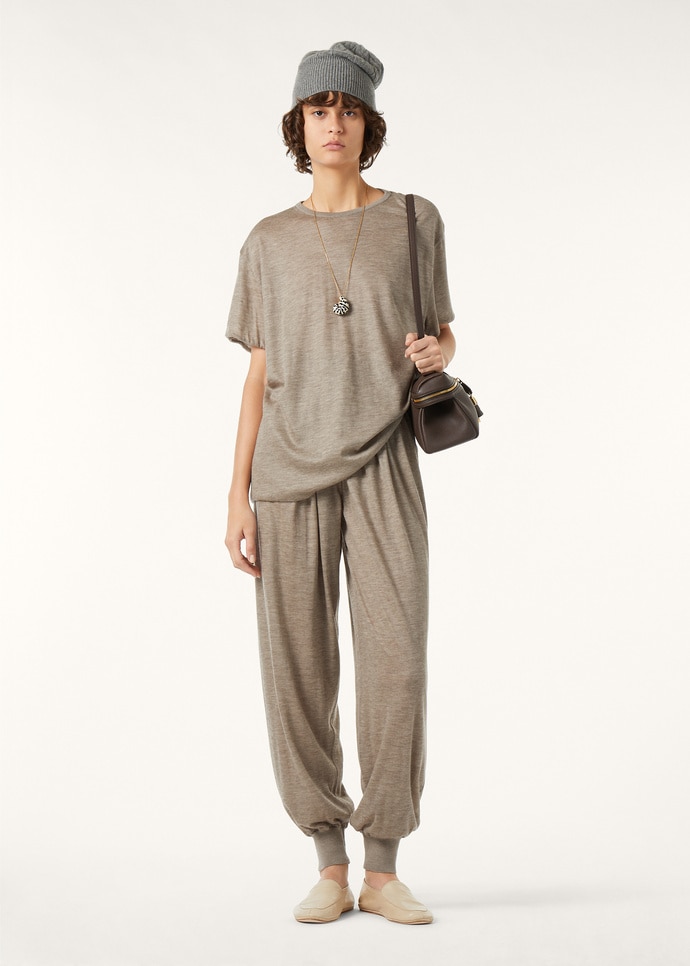 Softly structured for moments of leisure, the Carob joggers are crafted from exceptionally soft cashmere jersey with a fluid, weightless feel. The darted waist lends a touch of volume through the leg, tapering neatly into ribbed ankle cuffs. A drawstring closure refines the waist, completing the design on a note of ease.